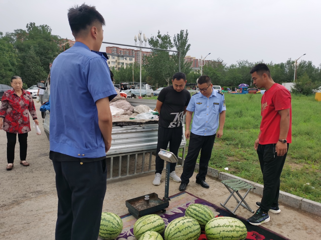 本次整治行动共检查各类摊贩12家,发现1家经营预包装食品的商贩存在进货台账记录不完善的问题;1家销售面包的商贩无法提供健康证;其余均为销售蔬菜、瓜果类农副产品的商贩,其中1家计量器具不达标准。针对以上问题,本着柔性执法的原则,执法人员以现场责令整改为主,辅以教育引导,告诫商贩今后自觉遵法守法,诚信经营。